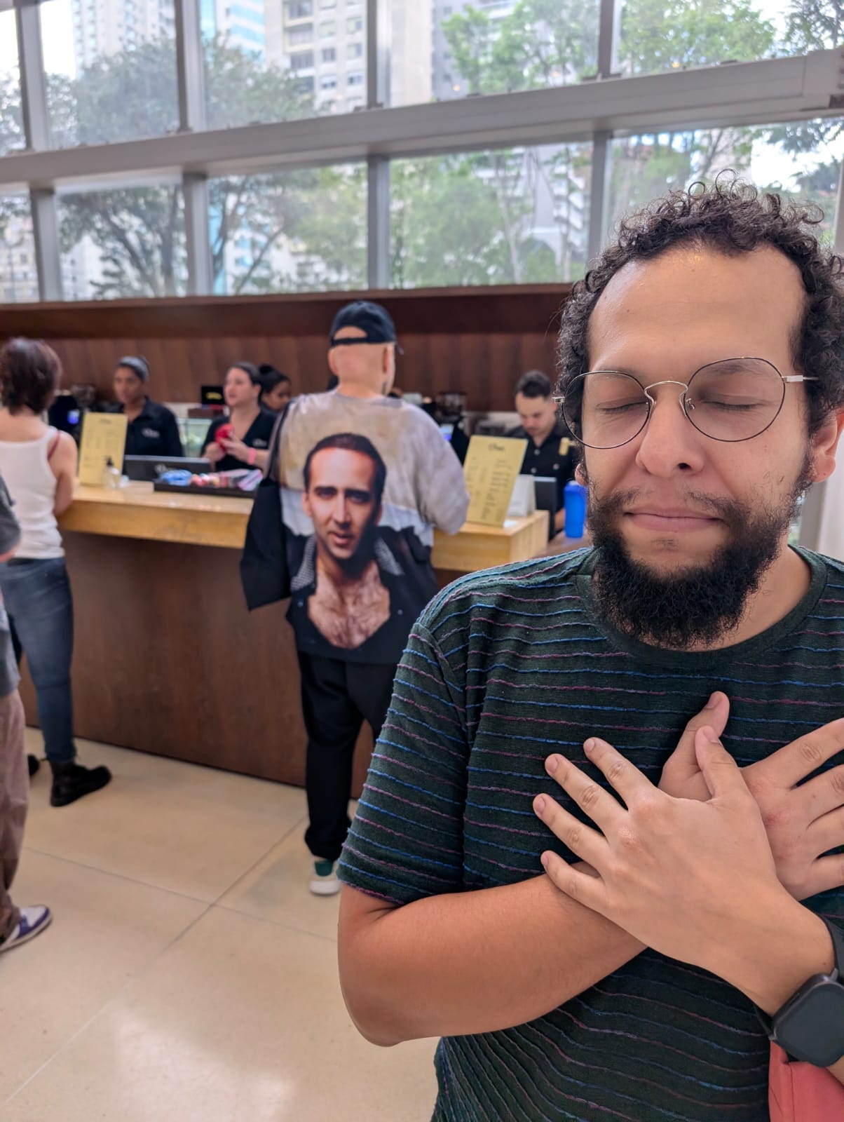 Fiz panquecas, comemorei aniversários. Utilizei IA para fazer uma foto do Arnold Schwarzenegger cruzado com o Schopenhauer. Ri. Recebi um vídeo da minha avó com Alzheimer dirigindo o próprio carro, compenetrada. Fui a um casamento de um grande amigo e tirei muitas fotos. Me achei bonito. Minha namorada estava linda. Distribuí diplomas. Tirei foto de uma banana siamesa: uma BINANA. Fui a festas juninas e me uni estavelmente. Fizemos uma viagem incrível para BH e me acabei de comer. Percebi que falo muito sobre comida. Comida é ótimo.